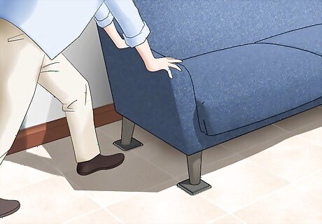 Move furniture away from walls and windows to make the room livelier. By keeping furniture away from walls instead of up against them, the room will feel bigger and more attention will be trained on the furniture itself. At the same time, moving it away from the windows will allow more natural light into the room. This will liven up the room and literally put your old furniture in a better light. For example, instead of pushing the back of a sofa directly against the wall, move it far enough out so that people can walk all the way around it.