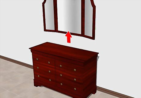 Take the mirror off an old vanity to make it a neat storage space. Unscrew and remove the mirror, then paint the wooden top and sides of the vanity to give it some color. Store desktop items on and inside the sides and place large bulky items in the empty middle. For example, you can easily store a laundry hamper or pile of folded sheets in the middle of your repurposed vanity.