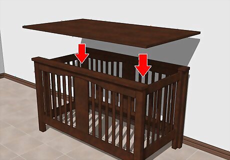 Place a glass or wooden top on an old crib to make a desk. Remove one of the side rails from the crib and insert it into the middle of the crib to form a shelf. Use glue or nails to attach the top you want to use. The type of top you go with will probably depend on the crib itself. For example, if the crib is white, a glass top will look better than a wooden one.