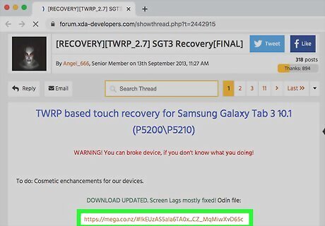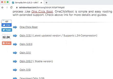 Click the version of Odin you want to install. The version you select depends on the version of Android that's running on your tablet. If you're using Jellybean or KitKat, select 3.09. For Lollipop, select 3.10.7. For Marshmallow, select 3.11.1.