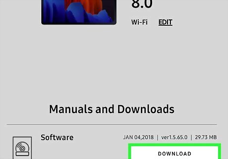 Go to https://www.samsung.com/us/support/downloads on your computer. Now you'll need to install some files on your computer that allow you to connect to the tablet via USB.
