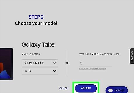 Select your Galaxy Tab 3 version. To do this, select Mobile, click Tablets, then Galaxy Tabs, and then choose your version from the "MAKE SELECTION" drop-down menu.