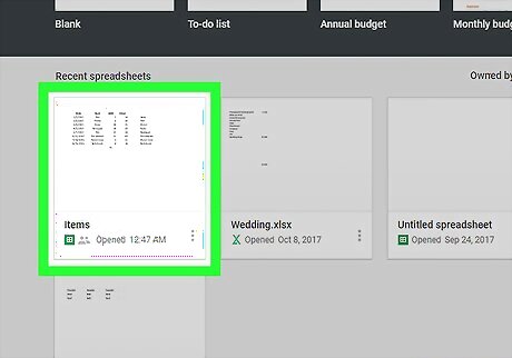 Click the spreadsheet you want to edit. Find the spreadsheet you want to look up on the list of your saved files, and open it.