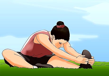 Stretch out moderately. Your body has limbered up considerably over the course of your warm up, race, and cool down. This means that you will be at a higher risk for overstretching. To avoid overstretching, take a relaxed approach to your cool down stretch.