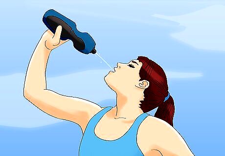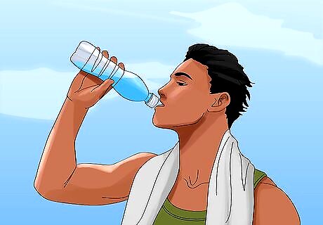 Hydrate to replenish your fluids. Some individuals sweat more than others, but after you've heated up for the race, run the race, and cooled down, it's likely you've been sweating pretty consistently for at least 20 minutes. This is a considerable amount of lost moisture that you'll need to replace. Once you feel well enough, you should drink some warm water to rehydrate. Warm water is gentler on your system and won't cause your stomach to spasm or clench uncomfortably. These sensations in your stomach can lead to nausea or vomiting if you're not careful. Your body will also have lost electrolytes, which are important minerals your body needs to function. The primary electrolytes you'll need to be concerned with replenishing are sodium (salt) and potassium. Sodium replacement tablets are an excellent resource for serious runners, but regular salt can also be dissolved in water, salty snacks consumed, or raw salt eaten to restore your body's sodium levels. Potassium can be restored through eating certain potassium rich foods, like bananas, avocadoes, and beans.