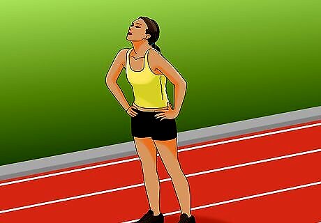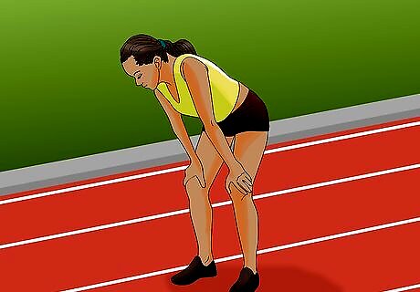 Keep on your feet and in good posture. Bending at the waist is a common response after an all-out, pell-mell race, but this can lead to feelings of nausea and can cause vomiting. Additionally, laying down or assuming a sitting/collapsed body position can cause lactic acid to pool in your muscles, which will create more muscular soreness later.