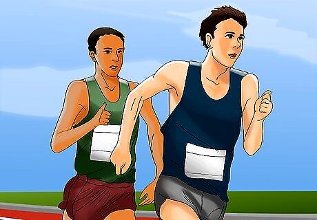 Surge with other runners if it puts you at an advantage. You'll want to read runners as they surge, but you shouldn't be afraid of to surge yourself. Boxing out other runners at this point can put you in better positioning for the end of the race. Keep your surge short to conserve energy and prevent your body from slipping into the anaerobic zone. Limit any surge you do at this point to a maximum distance of 20 m. Any farther and you run the risk of inducing your body's anaerobic response. You'll want to save anaerobic effort for later in the race.