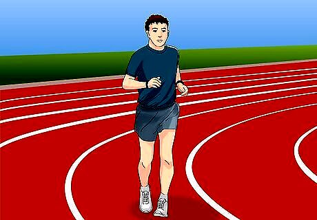 Jog a cool down lap. Now that you're feeling a little less haggard, you should take a light jog for a lap minimum, though you might want take a few laps for the best results. Your cool down jog should be comparable to your warm up. Both your warm up and cool down are intended to gradually prepare for physical activity or relax them afterwards. This helps prevent the damage sometimes caused by abrupt and extreme changes in activity.