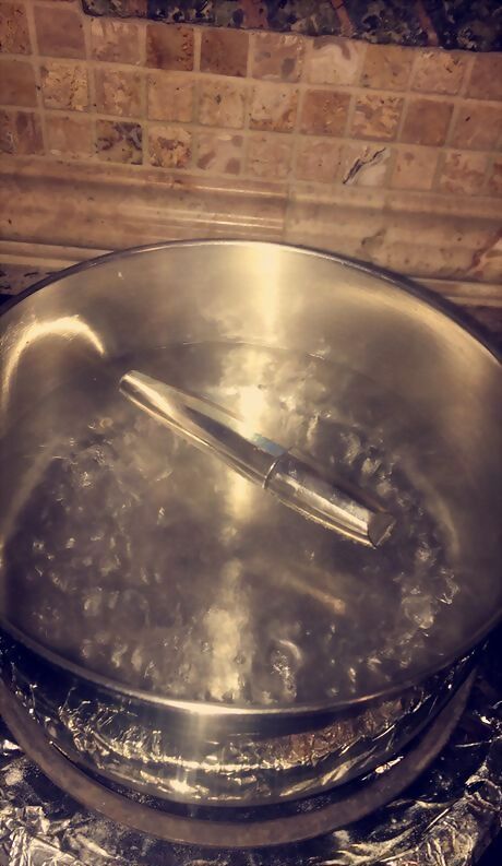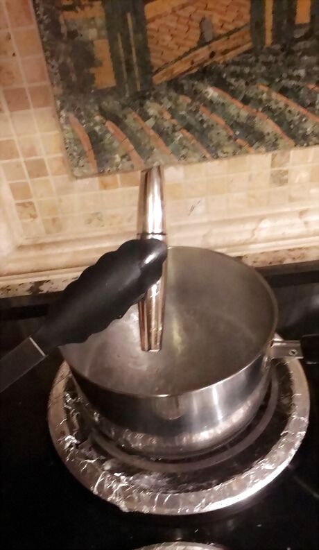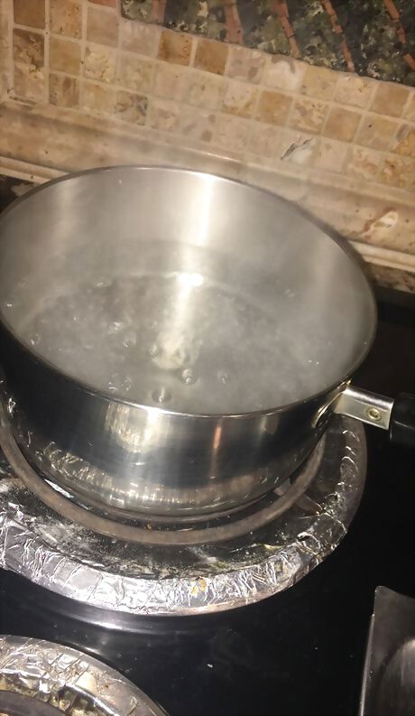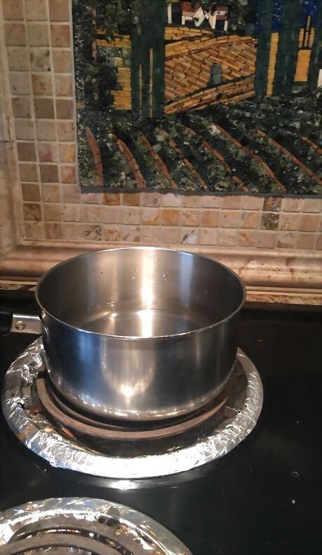 Place the saucepan on the stove. Place the saucepan with the water on the stove.