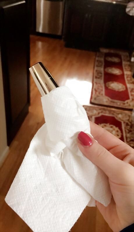 Dry the outside of the tube. After removing the mascara with tongs dry the outside of the tube with a napkin or paper towel.
