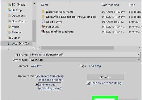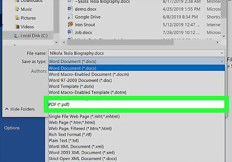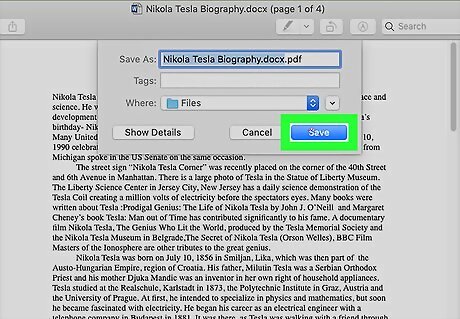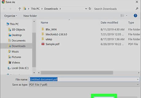 Click PDF. Your computer's file manager might pop up. You can change the file name and download location from there. On Mac, the PDF might automatically get saved to your Downloads folder.