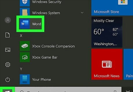Open Word. Mac users can find this in the Applications folder. Windows users can find this in the start menu.