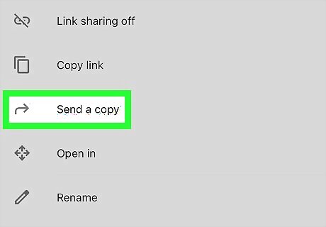 Tap Send a copy. For iOS, click on email or text message. The file should automatically get exported as a pdf. Tapping Save to Drive will prompt you to change the title of the document, the account it's saved under, and the location in Drive where it will save.
