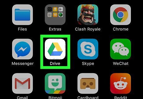 Open Google Drive. This app icon looks like a yellow, green, and blue triangle. You can find this app on either your home screen, in the app drawer, or by searching.