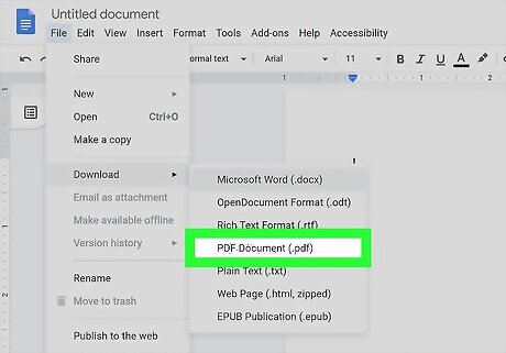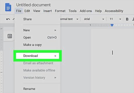 Hover over Download as. A menu will slide out.