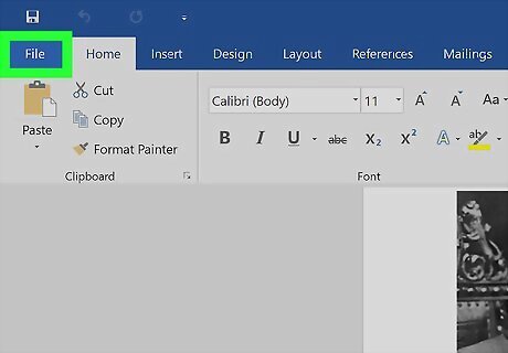 Click File. This is in the upper left of your document.