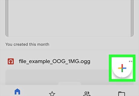 Tap the multicolored plus sign. This is in the lower right of your screen. A menu will open with selections such as creating a new folder, uploading a document, or creating a document.