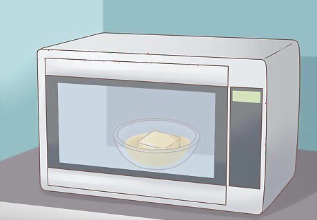 Melt the butter in a small bowl in your microwave. For a healthier alternative, use olive oil and don’t microwave it.