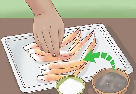 Sprinkle the crab legs with salt and freshly ground black pepper.