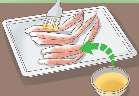 Brush the butter or olive oil over the crab legs using a basting brush.