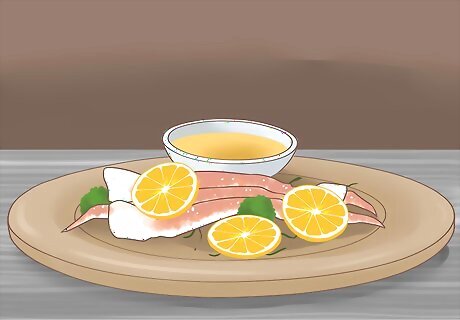 Serve the crab legs, providing lemon wedges and melted butter for dipping.
