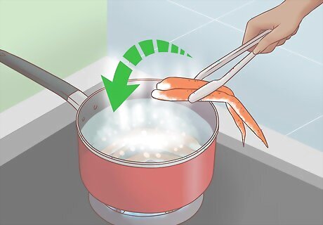 Lower the heat to medium and cook the crab legs for 5 to 7 minutes.