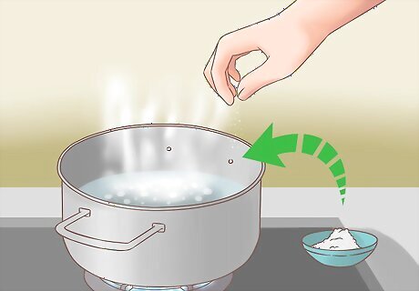Bring the water to a boil in a large pot and add the salt to the water.