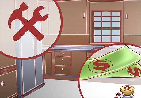 Replace worn handles, taps/faucets, fittings. These really stand out in an old kitchen and while they're not expensive to replace, if they're not fixed, they can reduce the appeal of the kitchen. If you have worn doors on the kitchen cabinet but cannot afford to replace the whole cabinetry, try replacing the doors and knobs, or having the existing doors refinished.