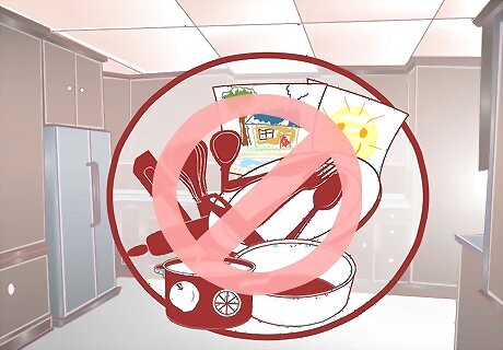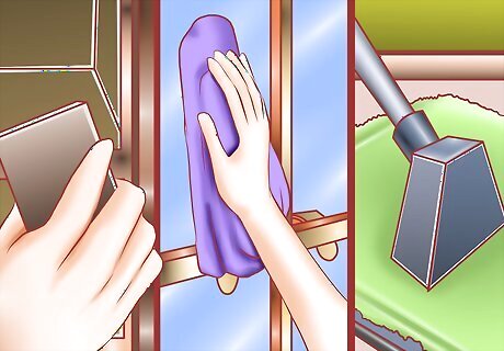Remove any evidence of pets. Put away dog and cat beds, bowls, toys, sleeping areas, etc. Not everyone likes pets, and even those who do, may disapprove of your choices as to where the pets were kept. Have a friend or relative care for the pets during house inspections.