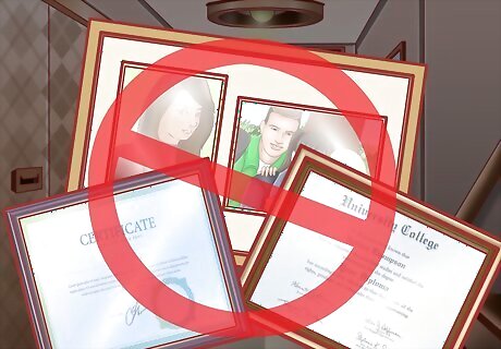 Remove family photos, certificates, degrees, etc. from the walls. These are too personal and can hamper the buyers' ability to visualize themselves in your house.