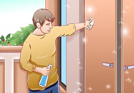 Spruce up the front door. The front door gives a vital first impression while the buyer waits for you to answer the bell. Make sure it is scrubbed clean. If necessary, paint it.