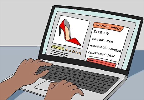 Include all the necessary details in the description of the product. No one will buy the shoe if they know nothing about it. If it's lacking in description, not only is it a deterrent to buy, but it comes off as shady, too, making your website or ad look sketchy – why would a seller purposefully withhold information? Here's what to consider: List the manufacturer's original size and its international equivalents. If the original size is not known, list length and width measurements inside and out. Describe the color, type (dress, casual, athletic, etc.) and style (oxford, brogue, pump, etc.) as accurately as possible. List the materials the shoe is made from and describe the method of construction if possible. If the shoes are not new, describe the condition specifically noting any flaws.