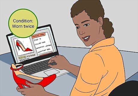 If the shoes are used, be honest. When it comes to the condition of used shoes, give as accurate a description and documentation as possible. If the shoes are not new, "gently used or worn" can be rather non-descript. Explain how they are used – i.e. "worn twice; some wear on tread, minor scratches on heel, but leather upper pristine." This grants the customer a sense of solace and makes you appear responsible and honest. Include photos of any flaws or wear. This can help avoid an angry buyer down the line who may feel they were not well-informed and were duped. Small additions such as those to your listings can help avoid delayed contact with buyers or potential buyers who may have questions. The more complete your listing the more attractive it will be to others.