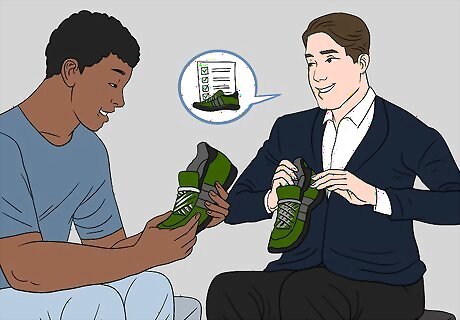Throw out a celebrity's name. Many humans are pretty basic when it comes to the art of persuasion. We all want to be fashionable, cool, and look good. If you say that Kobe Bryant or Kim Kardashian, for example, wears these exact brand of shoes, there's is a chance that that will perk up their interest. We often look to celebrities for cues on what's trendy, and this is the perfect time to put this factor to good use. That being said, for some people this can backfire. Try your best to read the customer. If they dress and act like they value being their own individual, you might want to stay away from the celebrities. Some people hear "Kim Kardashian" and they want to run in the opposite direction.