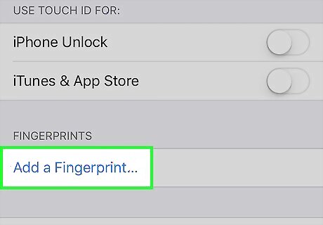 Tap Finger 1. It's at the top of the "FINGERPRINTS" section. Follow the on-screen instructions, tapping your finger gently on the Home button until your fingerprint is recorded. Repeat this step for as many fingers as you like. You can add fingerprints by tapping Add a Fingerprint at the bottom of the "FINGERPRINTS" section. Touch ID is only available on iPhone 6 or newer.