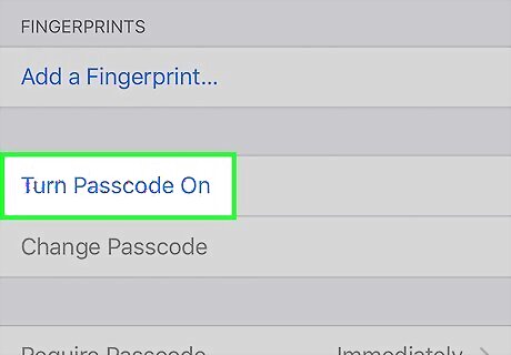 Scroll down and tap Turn Passcode On. It's just below the "FINGERPRINTS" section. If you've already enabled Touch ID, you'll be asked if you want to keep or delete the stored fingerprints. Make a selection to proceed.