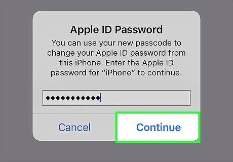 Tap Continue. It's below the password field. You have now added a passcode to your iPhone.
