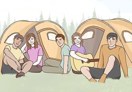 Arrange activities with your family or housemates. If you live with others, take advantage of that by hosting household activities. Invite everyone to join you and set a time and place in the house for fun. Here are some fun things you might do: Cook a big meal together. Have a game night. Put on a play in your living room. Camp in your backyard (or your living room). Build a blanket fort. Do kitchen science experiments.