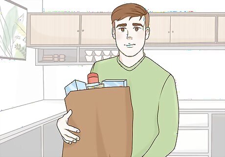 Shop for groceries, pet supplies, and household items weekly. You’re probably super worried about keeping your kitchen and home stocked with necessities, but there’s no need to fear. You’re still allowed to leave your home to get the items you need to take care of yourself and your family. When you need something, go directly to the store and back home. Limit yourself to as few trips as possible. Ideally, you might go once a week. Try to send 1 person from your household at a time. This way, fewer people will be out so it’s easier for everyone to social distance.Variation: You may decide to order your groceries, pet supplies, and household items online or through a delivery app. This is a great option if you’re in a high-risk group, and these services will remain open during the shelter-in-place as “essential” services.