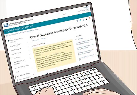 Check for daily updates on the coronavirus situation in your area. As you likely know, things are changing every day. Keep yourself informed by checking the news once or twice a day. Read or watch the local news to find out what’s happening near you. Additionally, visit the websites for the Center for Disease Control and Prevention (CDC) and World Health Organization (WHO) to find out the latest news about COVID-19. You can find CDC updates here: https://www.cdc.gov/coronavirus/2019-ncov/cases-updates/cases-in-us.html Visit this site for WHO updates: https://www.who.int/emergencies/diseases/novel-coronavirus-2019/events-as-they-happen