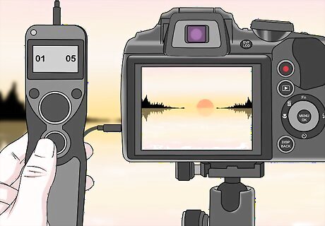 Hook up an intervalometer to your camera to trigger the time lapse shots. Some cameras have a built-in intervalometer, in which case you won't need to buy an external one. Get a remote intervalometer that is compatible with your camera if it doesn't have a built-in one. Some built-in intervalometers have the advantage that they let you program a start time, so you could even begin shooting when you are not right next to the camera.