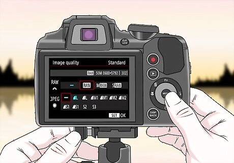 Shoot RAW files instead of JPEG. RAW files allow you the most flexibility when editing your video. With JPEG files you are pretty much stuck with what you get. You will export your RAW files as JPEGs later, after editing, to turn them into the time lapse video.