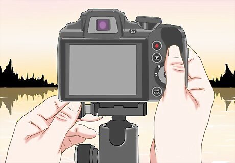Select a stable tripod to hold your camera steady while shooting. You need a heavy tripod that won't shake in the wind. This will ensure that your camera stays as still as possible while shooting your time lapse so all the shots are the same. Your camera will be in the same position for up to 2 hours, so make sure to use the heaviest tripod you can get your hands on. While shooting, you can stabilize your tripod even further by hanging your camera bag from it or placing rocks around the legs to hold them in place.