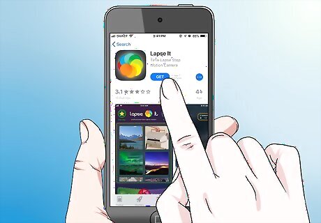 Download a 3rd party time lapse app if you want more settings to play with. 3rd party apps offer you much more control over settings like exposure, frame rate, white balance, video speed, and even let you set a timer or add filters. Search the app store for your model of smart phone, download a few time lapse apps, and experiment them to find one that you like. Some examples of nice time lapse apps are Framelapse, Lapse It, Microsoft Hyperlapse, Hyperlapse from Instagram, TimeLapse, iTimeLapse Pro, iMotion, and OSnap!. Some of these apps even have other features like letting you shoot stop motion videos or add audio.