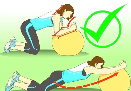 Combine upper-body movements with lower-body movements. Another alternative similar to supersets is doing whole-body exercises that work out multiple muscle groups at the same time, followed by brief rests in between. Exercise machines such as rowing machines can give you a whole-body workout in a shorter period of time, enabling you to shorten your workout without losing any benefits. You also can do compound body-weight or hand-weight exercises without needing a specific exercise machine. For example, add an arm movement such as crunching or lifting barbells while you do lunges or squats to target several muscle groups at once and shorten your workout. Using a stability ball is another way to combine muscle groups. Since your core and lower body are constantly engaged on most stability ball exercises, you can get a good whole-body work out in a much shorter time.