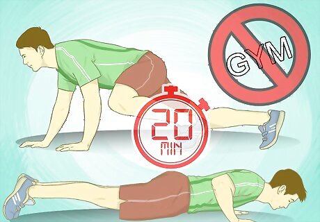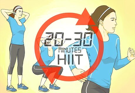 Stay off the machines. One benefit of HIIT that can save you significant time is that you do body-weight exercises that you can do anywhere. This means you don't have to go to the gym, and you don't have to mess with complicated machines that can take time to set up. You can design a 20-minute body-weight workout that you can do anywhere, without having to make a trip to the gym or use any equipment. With a 20-minute HIIT workout, you may burn anywhere from 300 to 600 calories and feel like you've been working out for over an hour. If you decide to switch to HIIT workouts, focus on doing at least two sessions each week. Leave at least one day of rest in between sessions.