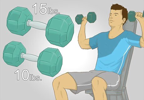 Push your body with drop sets. The drop-set technique sounds easy, but it is a very intense workout method that not only helps you save time, but can put you past any plateau you've reached in your strength training. One way to do drop sets with strength training is to perform your first set normally, remove 5 to 10 pounds, and then immediately do a second set. Then remove more weight and do a third set. Take a brief rest, then move on to your next exercise. Depending on how many exercises you normally do, you can shorten your workout tremendously with this technique. While it normally would take you between seven and eight minutes to complete three sets, with the drop-set technique you can complete three sets in two minutes or less. For example, if you normally do shoulder presses with 30 pounds of weight, you would do your first set with 30 pounds. Do your second set immediately after your first set, but with 20 pounds of weight. Then you would do your third set with 10 pounds.