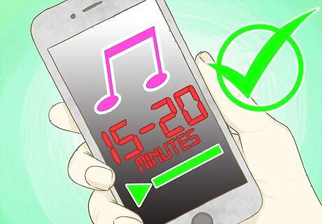 Avoid distractions. Working out with intensity won't do much to shorten your workout if your attention is repeatedly pulled from your exercise toward something else. Exercising alone, or going to the gym during non-peak hours can help you shorten your workout effectively. Working out at home rather than going to the gym at all is one way to save time. Even if you don't have weights or equipment at home, you can still do body-weight exercises and get an effective workout if you up the intensity (for example, by doing them faster). If you're working out at a gym or around other people, you may lose time waiting for machines, finding a good space to work out, talking to others, or even waiting for a shower when you're done for the day. Build a playlist that's exactly 15 or 20 minutes long, and use it as a timer. Wear headphones and focus on your exercises rather than anything else. If you listen to music on your phone, you may want to turn your notifications off while you're exercising.