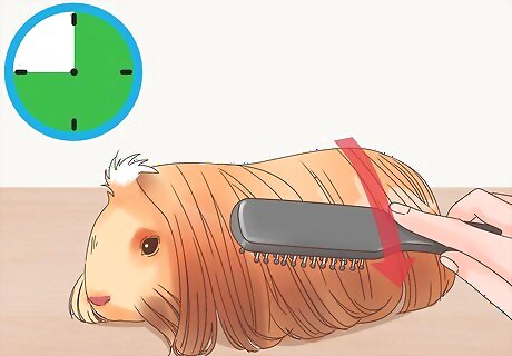 Brush your guinea pig 45 minutes before the judging begins. Brush your guinea pig to remove any dirt, dust, or other debris from its fur. If your guinea pig has long hair, make sure to comb out any tangles or mats.
