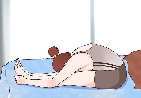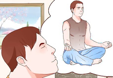 Try guided imagery meditation. In your mind, imagine a quiet and motionless place, such as a deserted beach or mountaintop. Fill in all of the details: the sights, sounds, and smells. Soon enough, this peaceful image will replace the world around you, providing a relaxed, comfortable feeling that will help you fall asleep.